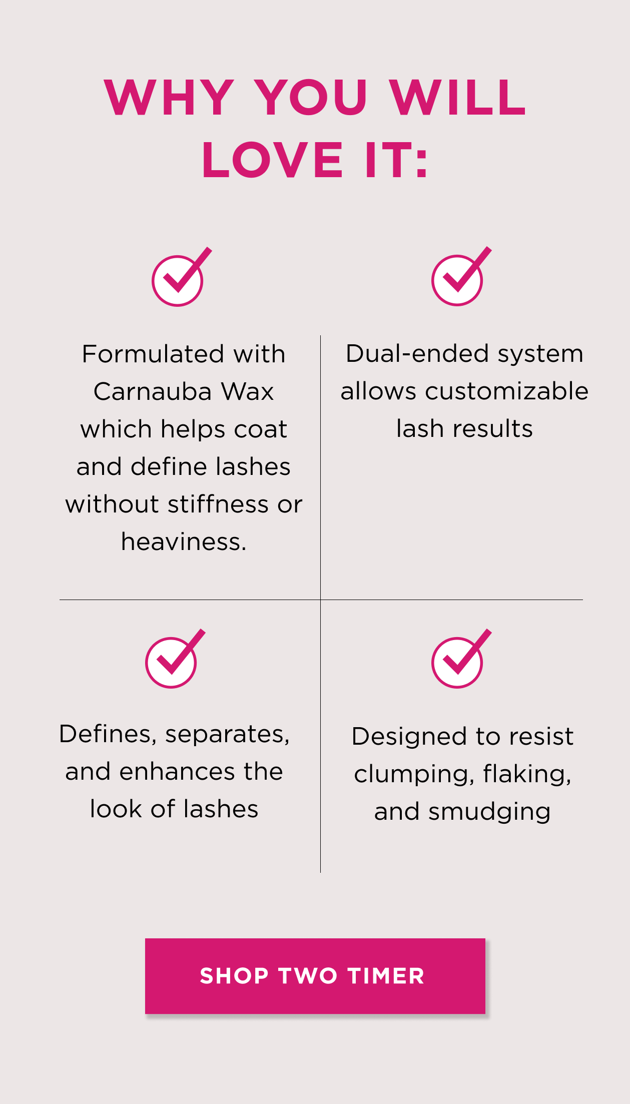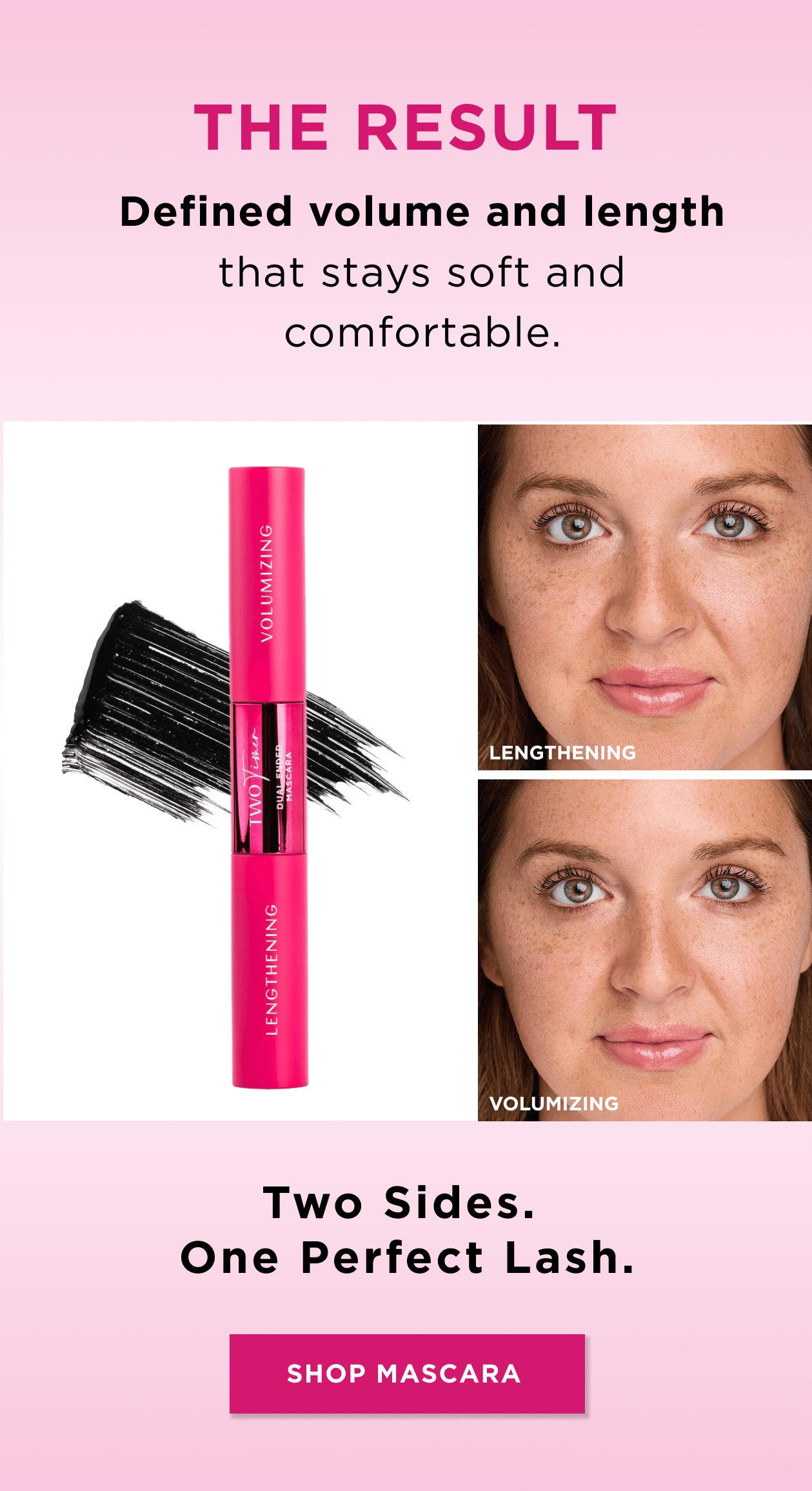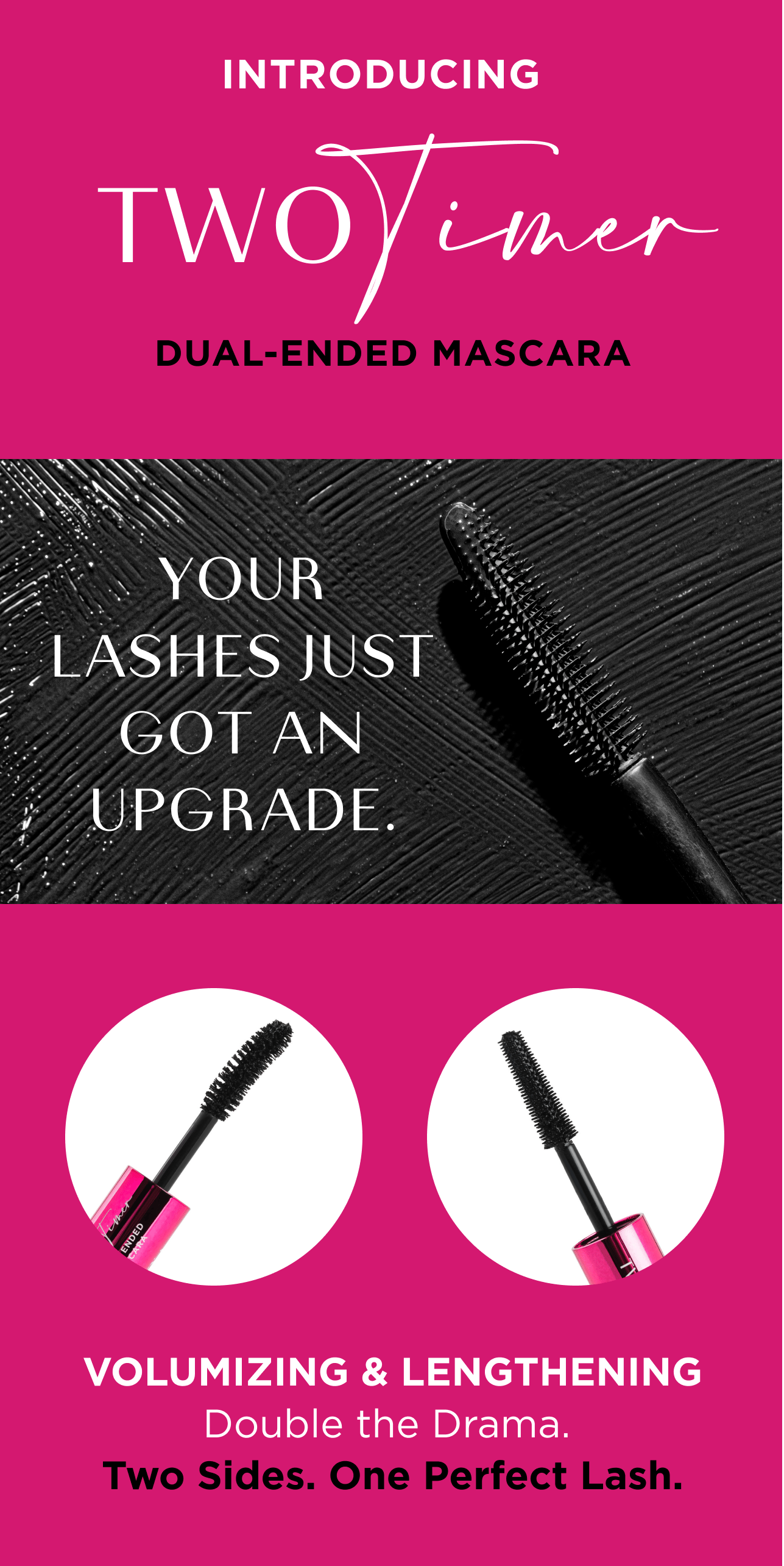 Length & Volume. Twice The Power. Introducing Two Timer Dual Ended Mascara.